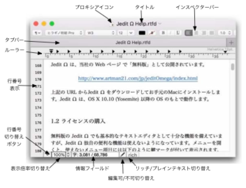 Jedit Ω は App Store またはこのサイトのどちらからもダウンロードできます。どちらも無料版をご利用できます(無料版でも基本的なテキストエディタとして十分な機能を備えています)。