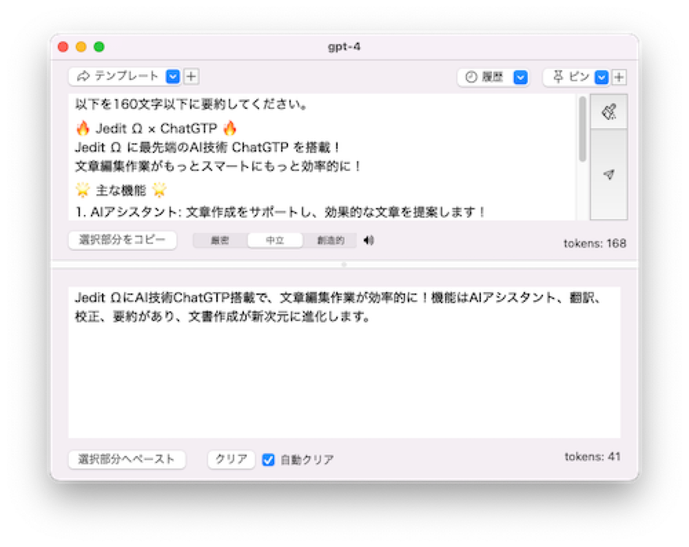 Jedit Ωは、最先端のAI技術 ChatGPTインターフェースを搭載し、ワープロ並みの編集機能、強力な検索/置換機能、さまざまなテキスト変換/加工ツール、入力補完/構文カラーリングなどのプログラミング支援機能など、リッチテキストからプレーンテキストまであらゆるテキストの編集・加工をサポートする「総合テキストツール」です。